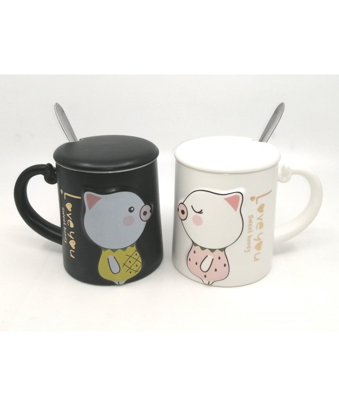 Taza de ceramica con diseño de cerdito.