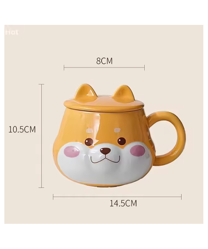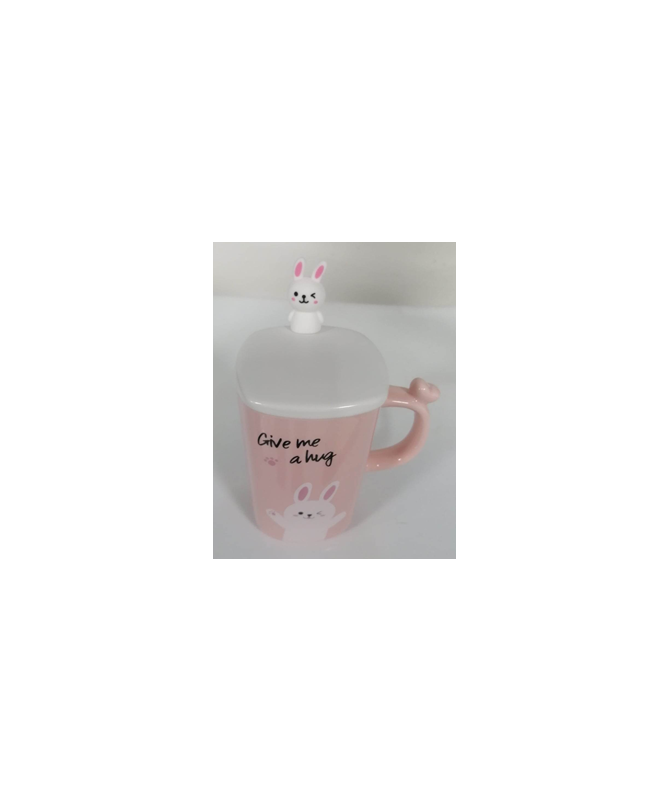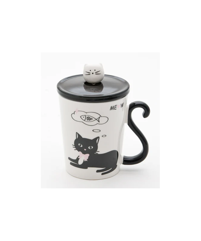 Taza de ceramica 12oz, Tapa con forma de gato, color gris, incluye tapa y cuchara.