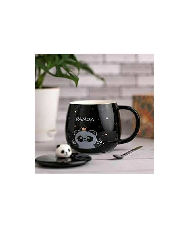 Taza de Cerámica de 14 oz, Diseno de Panda, Incluye Tapa y cuchara.