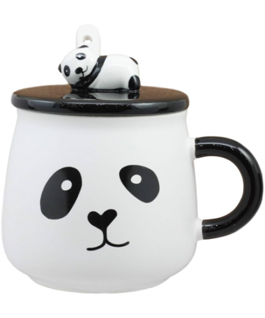 Taza de Cerámica de 14 oz, Diseno de Panda, Incluye Tapa y cuchara.
