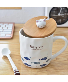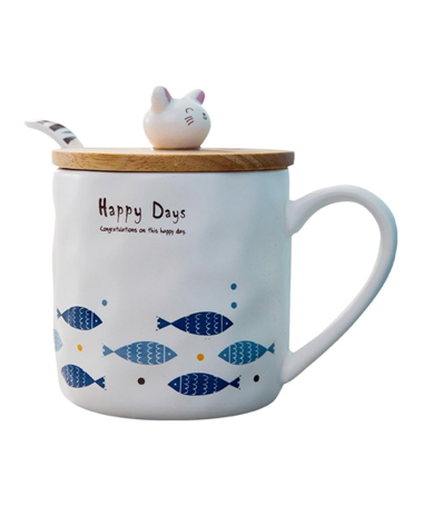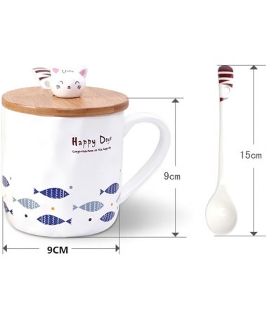Taza de Cerámica de 14 oz, Diseno de Panda, Incluye Tapa y cuchara.