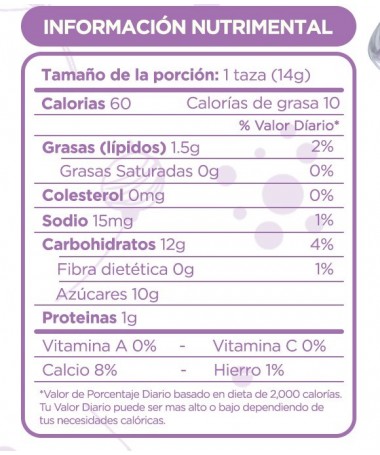 Presentacion en Bolsa de 3lb con la que puede preparar 8 litros de frappe o té en la rocas. Ideal para cafeterias con alto flujo ya que se encuentra endulzado con azucar de Caña y leche baja en grasa lo que hace la preparacion sumamente sencilla. Agregar 25g por cada medio litro de agua o leche. Para preparar frappe agregar 12oz de hielo, 4oz de agua y 25g(4 cucharadas usando nuestra cuchara doble) de taro instantáneo.